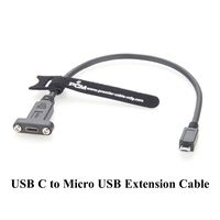 30cm USB 2.0 Data Charge Micro USB 2.0 Male to Type-C Female Extension Cable With Ear Screw Hole Panel Cable