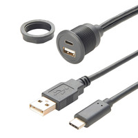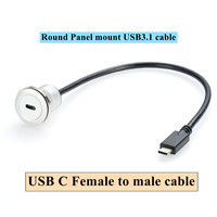 Round panel mount USB C & USB 2.0 Threaded Fixed Embedded Car Cable USB Type C 3.1 and USB 2.0 Male to Female Flush Mount Cable