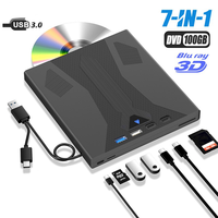 7 in 1 USB 3.0 Type C Optical External Blu-ray/DVD Drive Burner with SD/TF Port Blu Ray Burner Slim CD DVD Burner for Laptop PC $24.87
