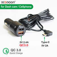 5V 2A Type-C USB QC3.0 Quick Fast Car Charger with Type-C Charging Port for Car Dash Cam Cellphone Camera DVR Wire 3.5Meters $7.66