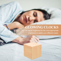 1Pcs Wooden LED Alarm Clock Electronic Square Digital Temperature Display Bedside Desk Clock Adjustable Brightness USB