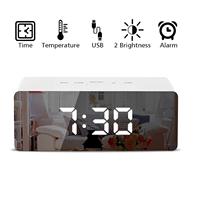 AK25-Mini Desk Alarm Clock Digital Mirror LED Temperature USB Bedside Table Travel Clocks For Bedroom Living Home Decor $10.07