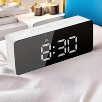 AK25-Mini Desk Alarm Clock Digital Mirror LED Temperature USB Bedside Table Travel Clocks For Bedroom Living Home Decor $8.36