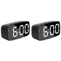 【NEW-SALE】2X Smart Digital Alarm Clock Bedside,White LED Travel USB Desk Clock With 12/24H Date Temperature Snooze Black $31.92