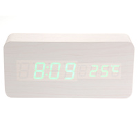 USB Aaa Powered Digital LED Wooden Desk Alarm Clock White Green Light Voice Control Date Temperature Display Clock $17.72