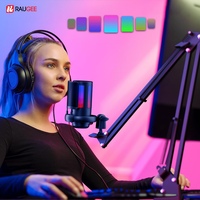 USB Microphone Professional Podcast Recording RGB Wire Gaming Mic with Flexible Extend Arm Desktop Speaker Broadcast Microphone $33.53