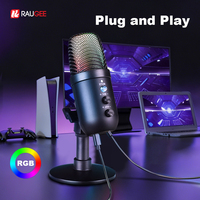 APPLIA-USB Microphone With RGB Lighting Switch One-Click Mute Professional Desktop Recording Mic With Stand Gaming Microphone $51.74