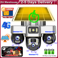 4G Solar Camera with SIM Card 100M Data PTZs IP CCTV Camera Outdoor 3 Lens 360 PTZ Home Security Protection Surveillance Monitor $70.19