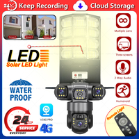 4G Solar Cameras with LED Street Light Outdoor Security Protection 3 Lens Remote Control PTZ Rotation Surveillance CCTV Monitor $100.64