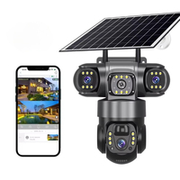 Three Lenses Solar Powered Camera 4G 6K 12MP Outdoor Security IP Cameras Color Night Vision IP66 Waterproof House Surveillance $54.43