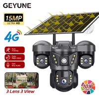 15MP 4G Sim Solar Camera Outdoor WiFi Surveillance Wireless CCTV 3 Lens 3 Screen PIR Night Vision Auto Tracking Security Camera $64.76