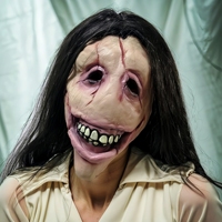 Slit Mouth Woman Mask Scary Female Ghost Hair Creepy Smile Horror Latex Face Cover Halloween Costume Cosplay Party Props Adults $13.27