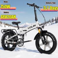 VITILAN i7 Pro 3.0 Electric Bike 750W Motor 48V20AH Battery Full Suspension Fold Electric Bicycle 20 Inch All Terrain FAT TIRE $1481.55