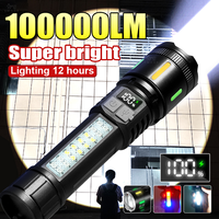 High Power Flashlight 18650 Battery Rechargeable LED Flashlight Waterproof White Laser Side Lamp Digital Display Outdoor Camping