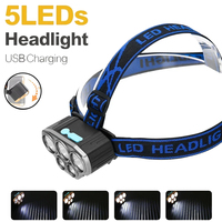 Rechargeable 5 LED Headlight Ultra Bright Powerful Waterproof Head Flashlight Head Torch for Outdoor Camping Running Lighting