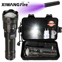 Super Bright LED Flashlight Yellow and White Laser Dual Source Rechargeable Waterproof Zoomable Hand Torch for Camping Outdoor