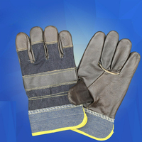 TopGrain Cowhide Leather&Dark Denim Short Split-Finger Welding Work Gloves Semi-Leather Safety Protective Gear Industrial Labor $3.59