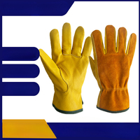 Leather Work Gloves For Men Yellow Cowhide Heavy Duty Safety Protective Driver Working Welding Mechanic Gloves $9.50