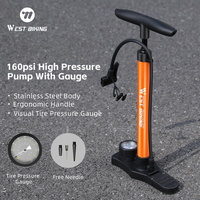 WEST BIKING High Pressure Bicycle Air Pump With Pressure Gauge 160 PSI Stainless Steel Floor Pump MTB Road Bike Tire Inflator $17.70