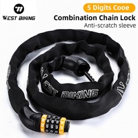 WEST BIKING Bicycle Lock 65-150CM Multi-length Bike Chain Lock Motorcycle Ebike Cycing 5-Digit Password Anti-theft Safety Lock $12.68