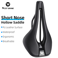 WEST BIKING Lightweight Road Bike Seat Short Nose Racing Bicycle Saddle Hollow Breathable Painless Triathlon Cycling Saddle $38.25