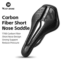 WEST BIKING Ultralight T700 Carbon Fiber Saddle Road Bike Comfortable PU Seat Cushion Bicycle Short Nose Hollow Cycling Saddle $75.39