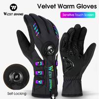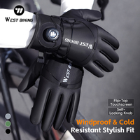 WEST BIKING Self-locking Cycling Gloves Windproof Warm Fleece Sports Gloves Waterproof Flip-on Touchscreen Non Slip Skiing Gloves – Black XL