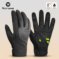 WEST BIKING Winter Men Thermal Gloves Cycling Windproof Full FingerGloves Touch Screen Fleece MTB Road Bike Warm Sport Gear $10.77