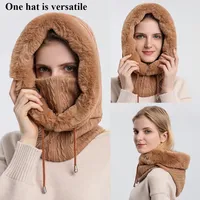Winter Knitted Scarf Hat Hood Thick Warm Hats For Women Outdoor Riding Ski Bonnet Caps – Black