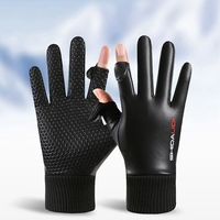 Winter Warm Cycling Touch Screen Pu Leather Gloves Outdoor Ski Hiking Windproof Waterproof Thermal Fleece Lined Anti-slip Gloves $5.39