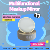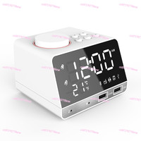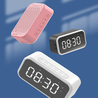 Wireless bluetooth Speaker Mirror LED Display Dual Alarm Clock Bass Stereo HD Calls Mini Portable Speaker – Black