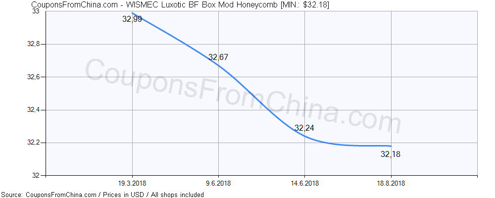 Price history (for all/most countries) for WISMEC Luxotic BF Box Mod Honeycomb is here. The lowest price was: $32.18.