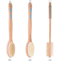 Long Handle Wooden Bath Brush Double Side Natural Bristle Body Scrubber Exfoliate Clean Remove Dead Skin Foot Leg Massage Tool