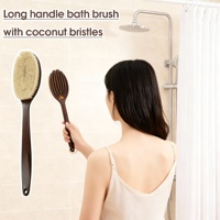 2Pcs Long Handle Bath Brush Natural Bristles Wood Handle Deep Cleanse Exfoliate Dead Skin Shower Scrubber Body Care Brush