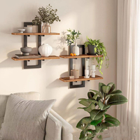 1Set Rustic Wood Corner Shelf Floating Wall Mounted Storage Decorative Shelves Bathroom Bedroom Kitchen Display Organizer $21.00