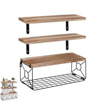 1Pcs Floating Shelves Wall Mounted Wood Storage Display Shelf with Metal Wire Basket Hanging Rack for Dorm Bedroom Bathroom $7.31