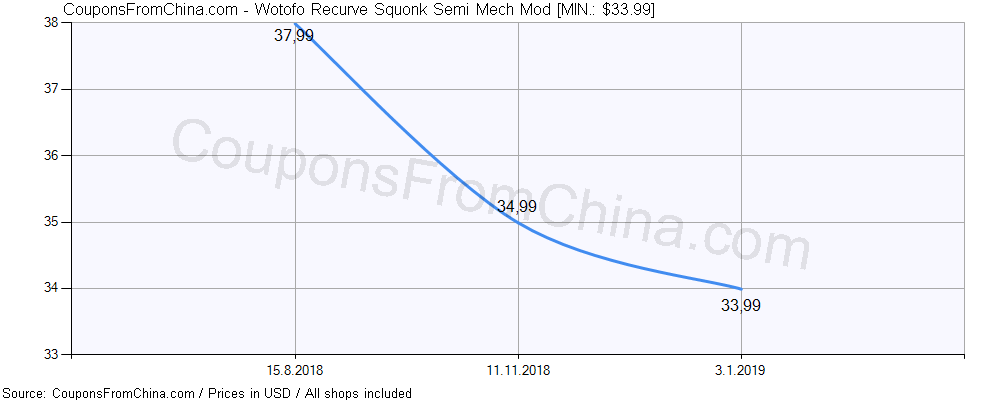 Here is price history (for all/most countries) for Wotofo Recurve Squonk Semi Mech Mod. The lowest price was: $33.99.