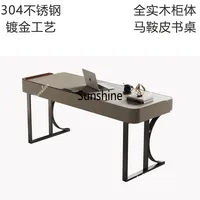 Italian modern minimalist desk saddle leather desk study living room computer table solid wood boss writing deskX