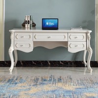 European style luxury solid wood desk with drawer computer desk writing ivory white table for bedroom furniture