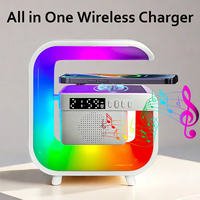 All in One Wireless Charger Station Bluetooth Speaker TF FM With RGB Light Alarm Clock For iPhone Samsung Xiaomi Fast Charging