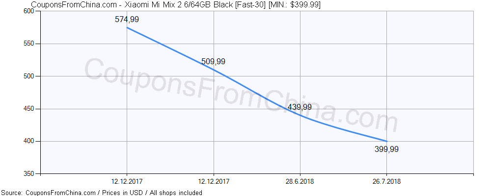 Click on image to enlarge. ![Xiaomi Mi Mix 2 6/64GB Black [Fast-30] price history Price history for Xiaomi Mi Mix 2 6/64GB Black [Fast-30]](https://couponsfromchina.com/pricehistory/History3513.png)