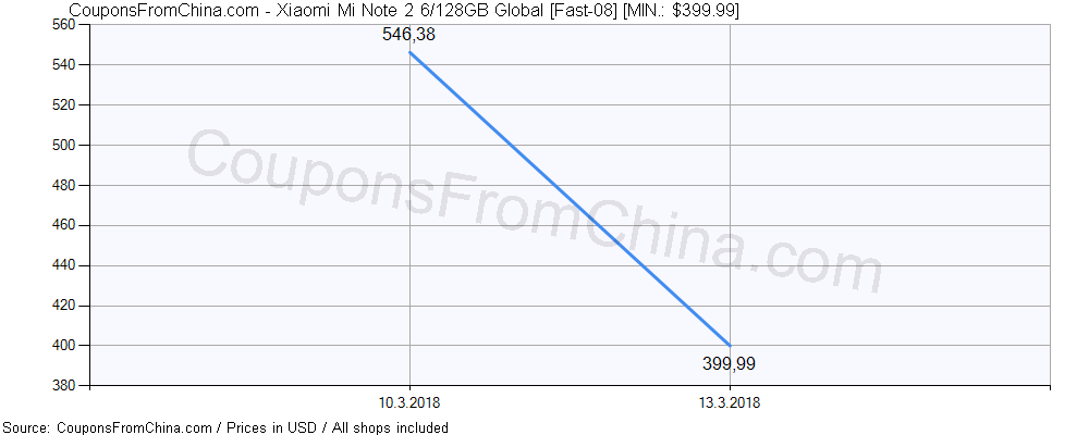 Click on image to enlarge. ![Xiaomi Mi Note 2 6/128GB Global [Fast-08] price history Price history for Xiaomi Mi Note 2 6/128GB Global [Fast-08]](https://couponsfromchina.com/pricehistory/History5421.png)