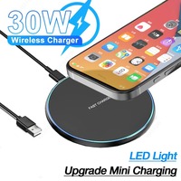 30W Mini Wireless Charger Pad LED Light For iPhone 16 15 14 13 12 Samsung S25 S24 Xiaomi AirPos Pro Desktop Fast Charger Station $3.51