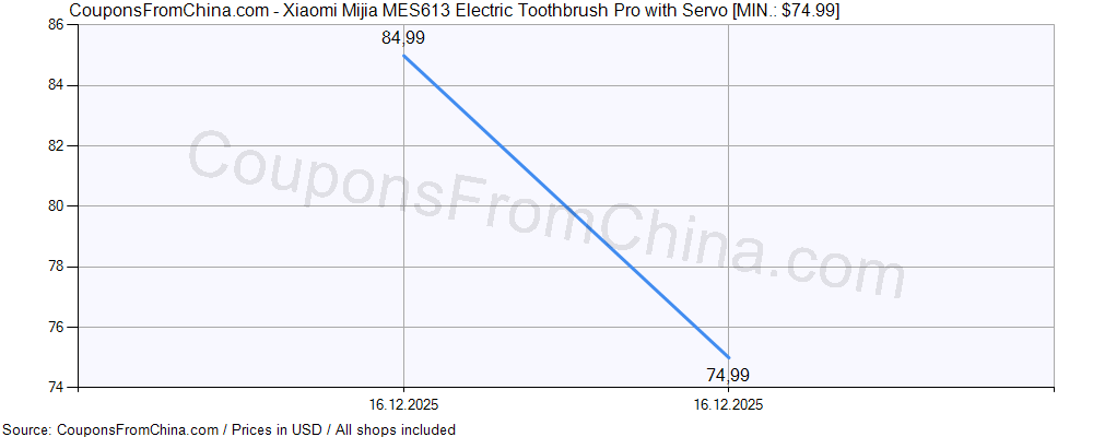 Check out price history chart (for all/most countries) for Xiaomi Mijia MES613 Electric Toothbrush Pro with Servo. The lowest price was: $74.99.