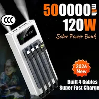 500000mAh 4 in1 Solar Power Bank Ultra Capacity USB Fast Charging USB TypeC LED Light Outdoor For iPhone Samsung Xiaomi 2026 NEW $17.06