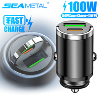 SEAMETAL 100W Car Charger Hidden Alloy Dual-USB Charger PD30W QC3.0 Ultra-Fast Charging Phone Charger for iPhone/iPad/Android $2.25