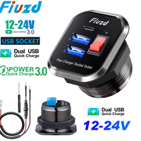 12/24V Aluminium Metal 36W QC3.0 Dual USB Car Motor Charger Socket Waterproof With Voltmeter Switch Fast Quick Charge Adapter $8.30