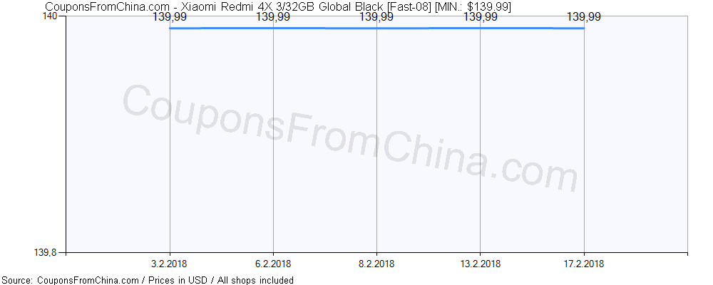Click on image to enlarge. ![Xiaomi Redmi 4X 3/32GB Global Black [Fast-08] price history Price history for Xiaomi Redmi 4X 3/32GB Global Black [Fast-08]](https://couponsfromchina.com/pricehistory/History4741.png)