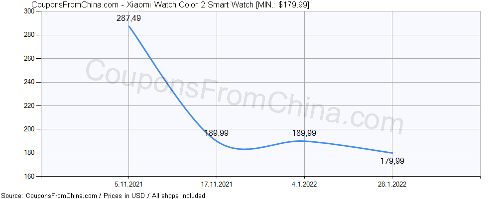 Price history (for all/most countries) for Xiaomi Watch Color 2 Smart Watch is here. The lowest price was: $179.99.