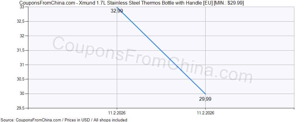 Click on image to enlarge. ![Xmund 1.7L Stainless Steel Thermos Bottle with Handle [EU] price history Price history for Xmund 1.7L Stainless Steel Thermos Bottle with Handle [EU]](https://couponsfromchina.com/pricehistory/History55383.png)